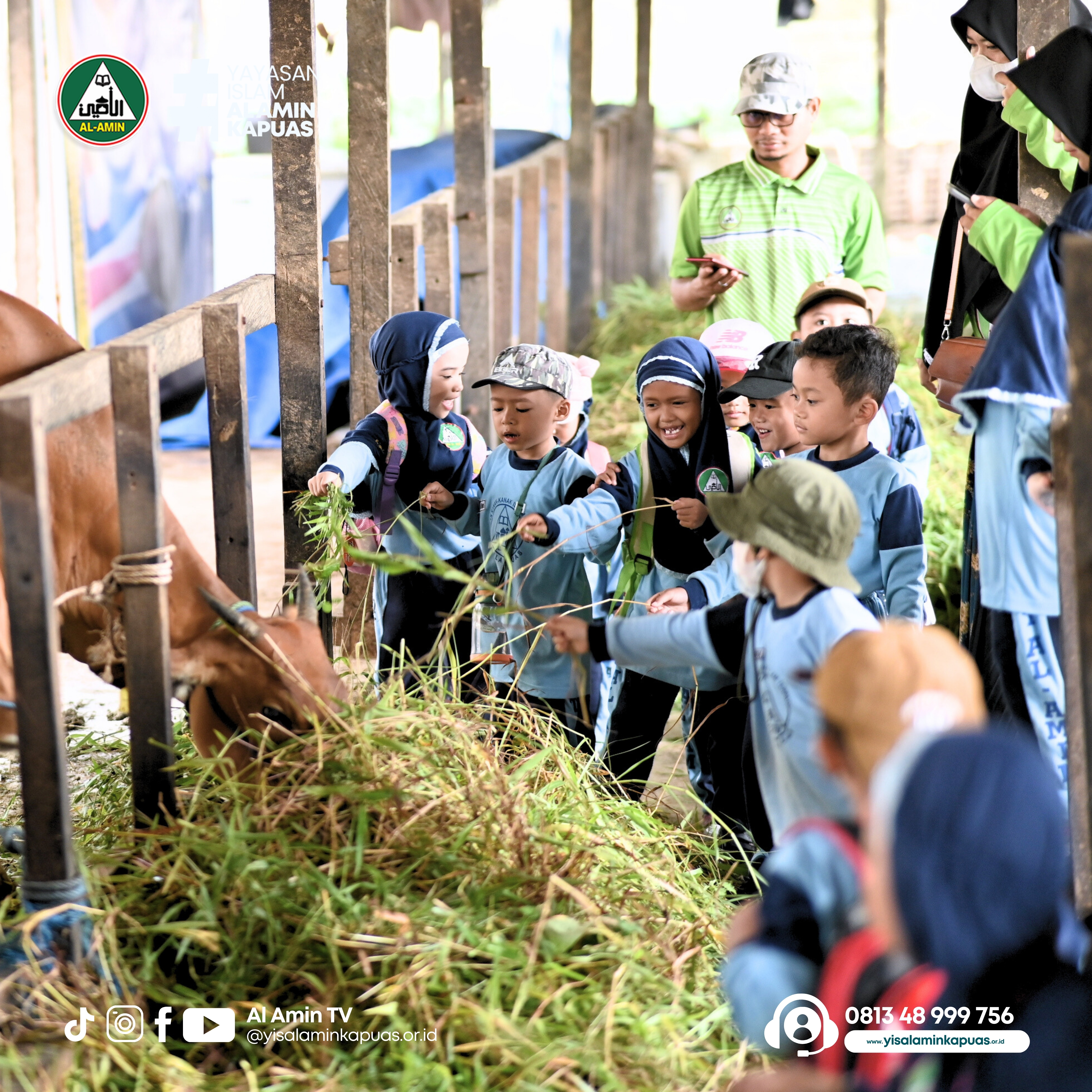 Yisalaminkapuas.or.id, Kuala Kapuas - Keceriaan siswa-siswi TKIT Al Amin Kapuas yang mengikuti kegiatan Outing Class ke tempat peternakan sapi pada Jum'at (11/10/2024) di Jalan Mahakam. Dengan penuh antusias, mereka belajar langsung tentang kehidupan hewan ternak, khususnya sapi.
